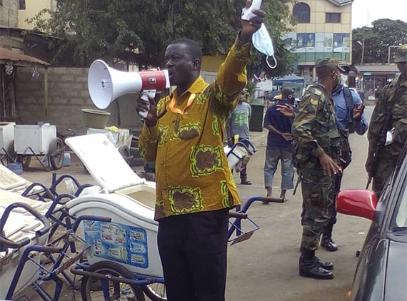 An officer from the assembly educating people in the community on the need to wear a nose mask